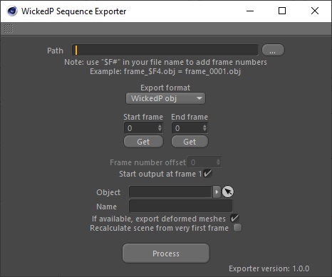 So, I developed a little export tool that lets me export animated meshes into a well-known Wavefront 'OBJ' format sequence. This OBJ format is an open geometry definition format that other graphics applications can open. It's a simple data-format that represents 3D geometry. My tool lets the user export an OBJ sequence, which can then be imported into another piece of software.